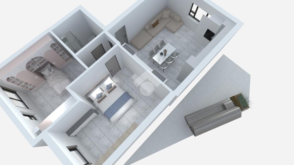 L’ingresso si apre su un soggiorno con angolo cottura open space, reso accogliente dalla luce naturale e con accesso diretto alla terrazza abitabile, perfetta per pranzi all’aperto o momenti di relax.
