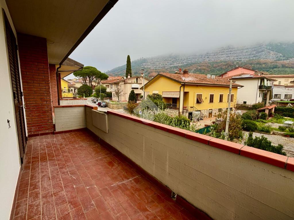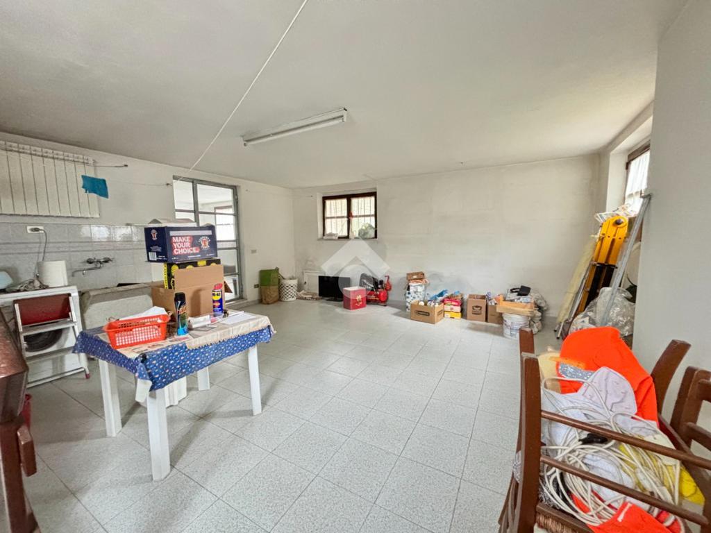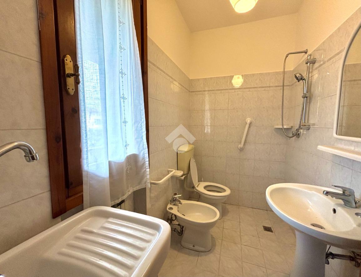 Attraverso la terrazza d’ingresso si accede all’ampio soggiorno di c. ca 25 mq, un ambiente luminoso e ben distribuito. La cucina è abitabile, dotata di termocamino installato nel 2018 e con accesso al terrazzo. Sullo stesso livello è presente un bagno di servizio finestrato con doccia.