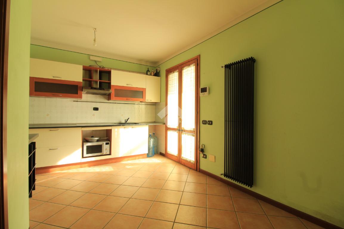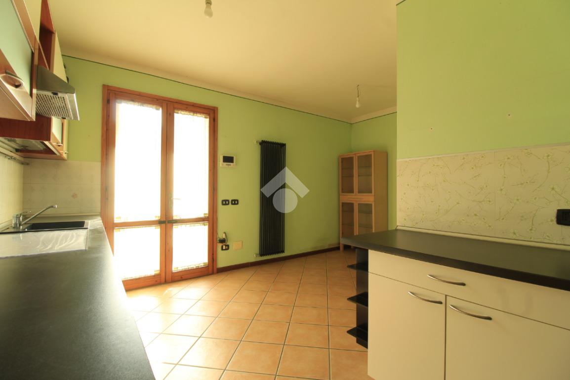 Dalla cucina si accede al resede tergale, dotato di cancello carrabile, che consente di parcheggiare comodamente l'auto all'interno della proprietà, oltre ad essere ideale per pranzi e momenti di relax all'aperto.